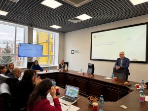 В ходе совещания по партнерской проверке качества образцов на региональный уровень заместитель директора Центра «Мой бизнес» (СПб ГБУ «ЦРПП») Георгий Елецких провел ключевую презентацию, где были подробно показаны материалы, подтверждающие соответствие организации всем строгим критериям партнерской проверки.