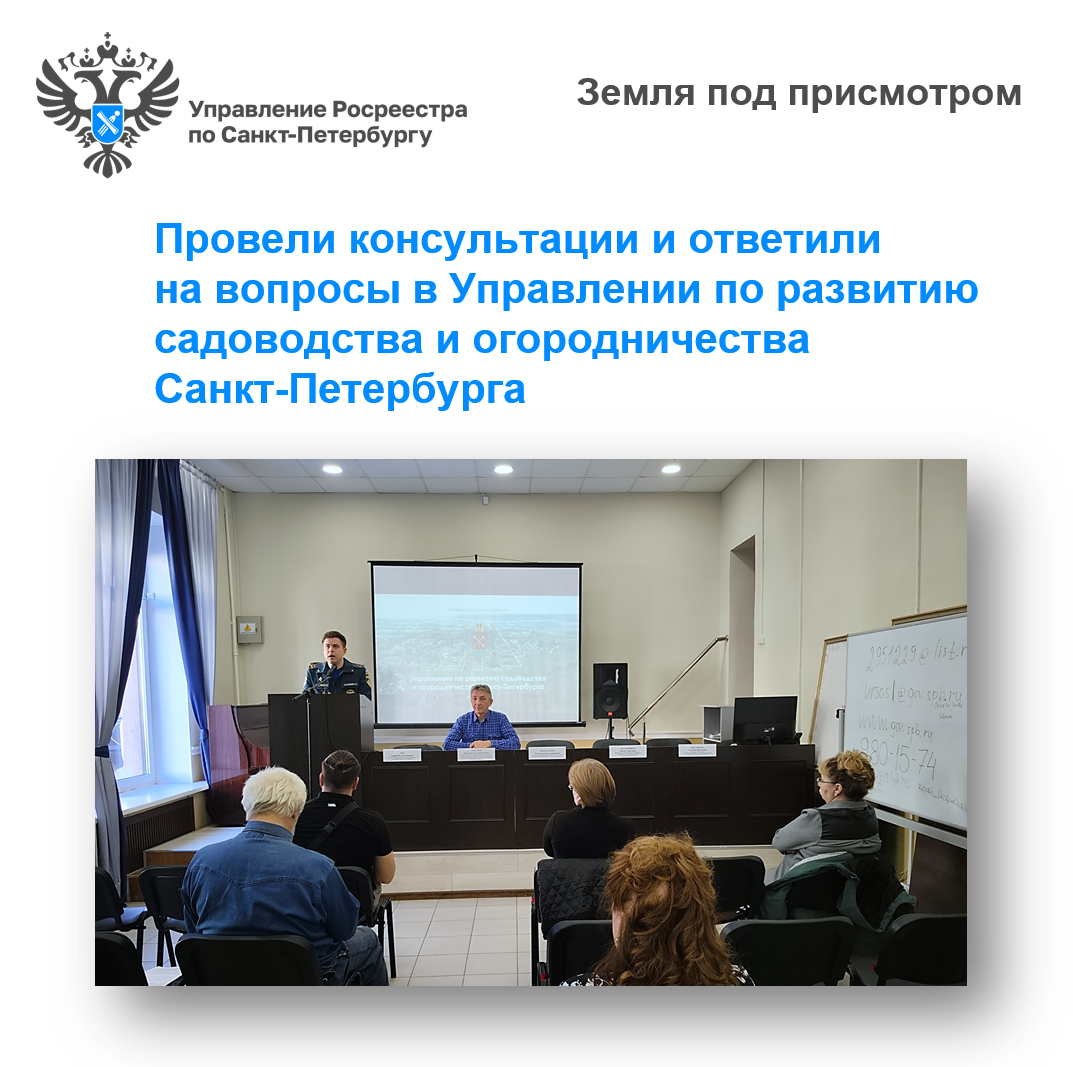 Заместитель начальника отдела государственного земельного надзора Управления Росреестра по Санкт-Петербургу Константин Тогулев принял участие в очередном мероприятии Управления по развитию садоводства и огородничества Санкт-Петербурга в рамках цикла консультационно-методических занятий для представителей садоводческих и огороднических некоммерческих товариществ, расположенных на территории Санкт-Петербурга и Ленинградской области.